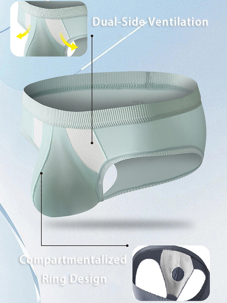 極上の滑らかさを誇るアイスシルク素材を使用したブリーフは、涼しく爽やかな着心地で、暑い日でもドライで快適な着心地をキープします。リブ編みのデザインが洗練された印象を与えます。仕切り付きのポーチは優れたサポート力と通気性を提供します。スタイルを犠牲にすることなく、涼しく快適に過ごしたい方に最適です。