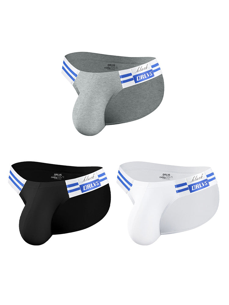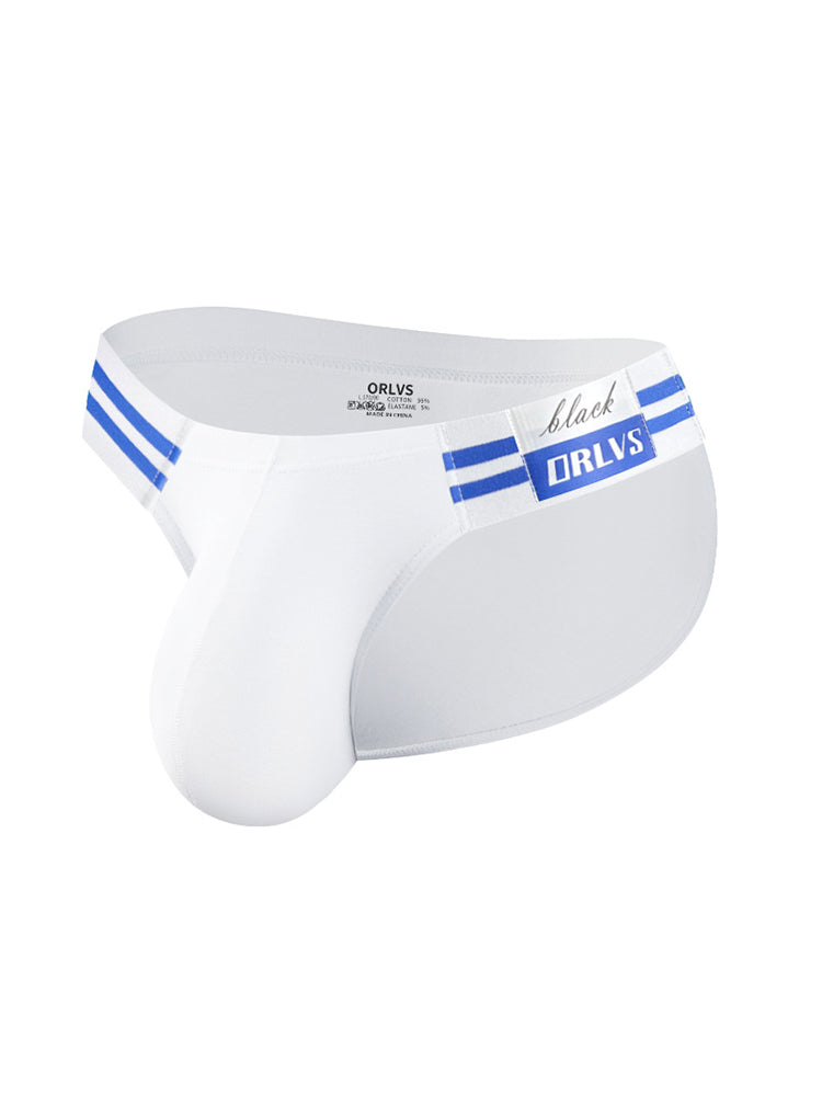 Our high slit cotton men's briefs! Navy blue striped elastic band design for more eye-catching. made with a comfortable low-rise cut and pure cotton and spandex stretch fabric. it fits close to the body for a comfortable and smooth fit. Contoured pockets lift and support for lasting comfort and a sexy silhouette. Due to its natural breathability. it helps keep the body dry. It is an ideal garment for active people.