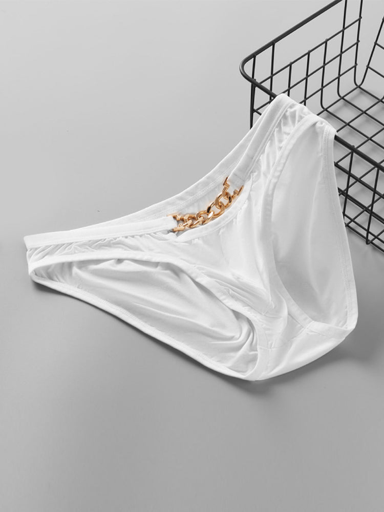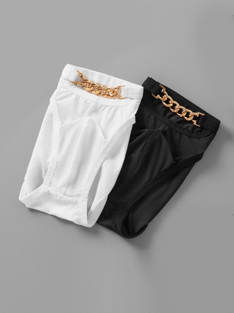 Our Men's Fashion-Forward Briefs – where bold design meets everyday comfort. These low-rise briefs feature a statement metal clasp detail and a contoured U-pouch design that provides both breathable support and a confident silhouette. Crafted from ultra-thin. moisture-wicking fabric. they keep you cool and dry with strategic airflow where it matters most. The single-layer construction offers a barely-there feel while the secure fit prevents shifting. making them perfect for all-day wear or special occasions. A daring twist on classic underwear that doesn't compromise on comfort – because feeling sexy should never mean sacrificing performance.