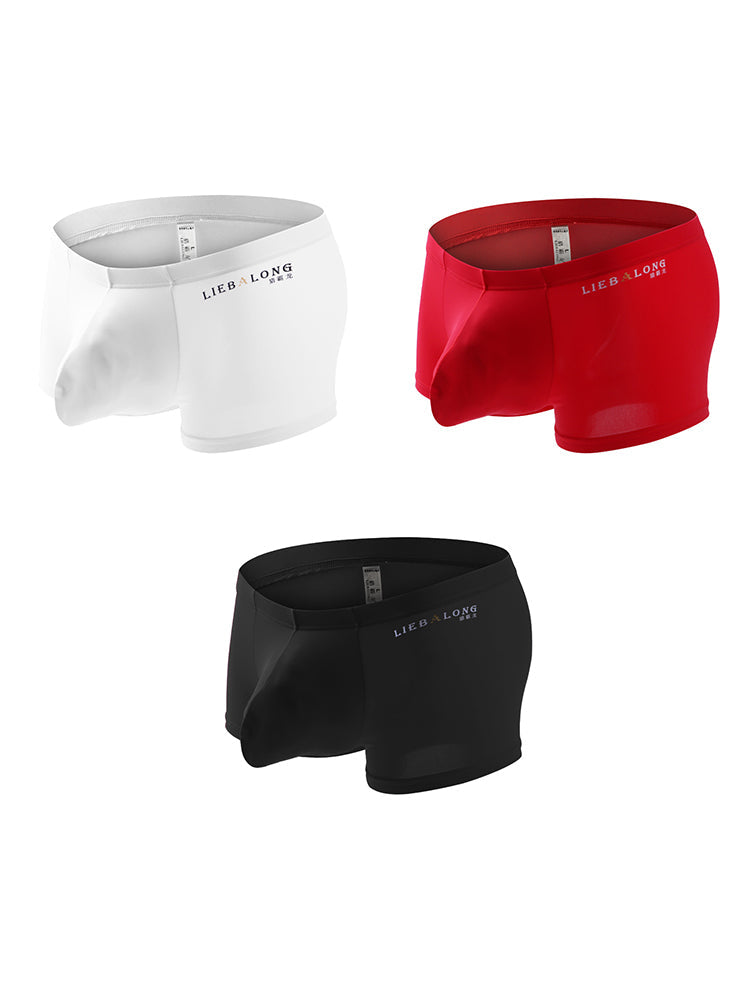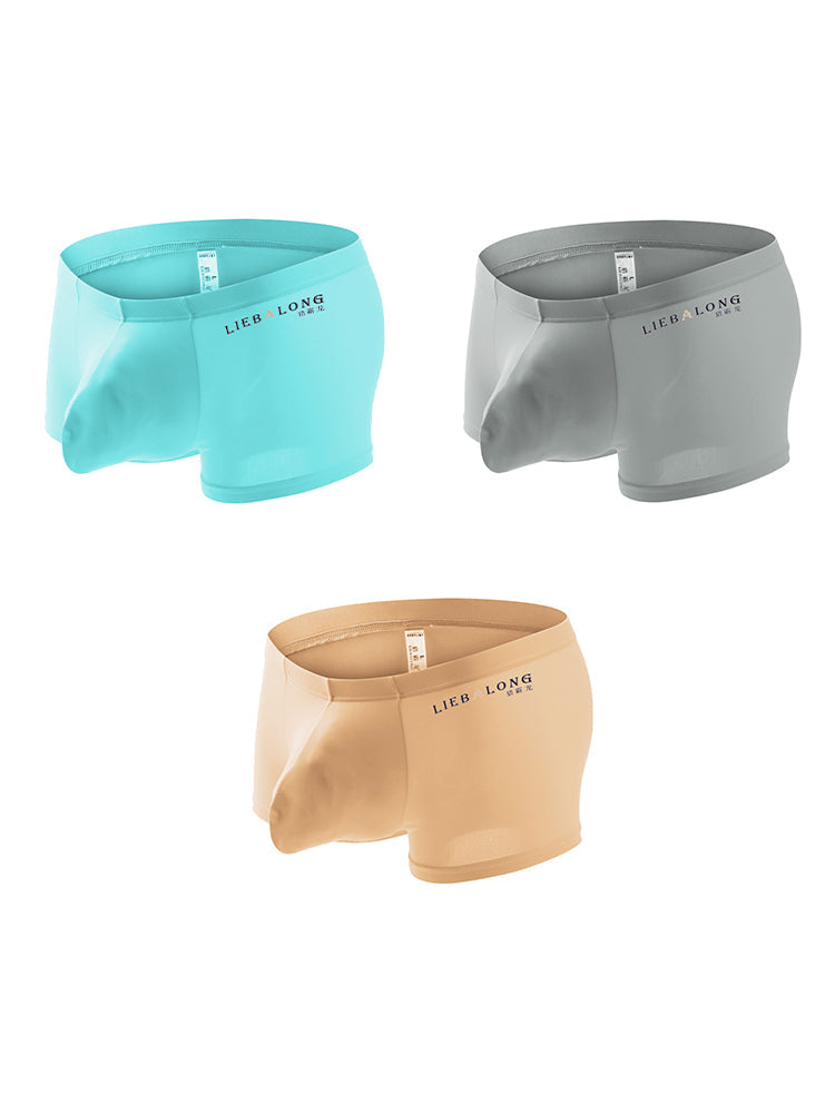 3 Pack Men's Breathable Ice Silk Double-Layered Big Pouch Sexy Boxer Briefs
