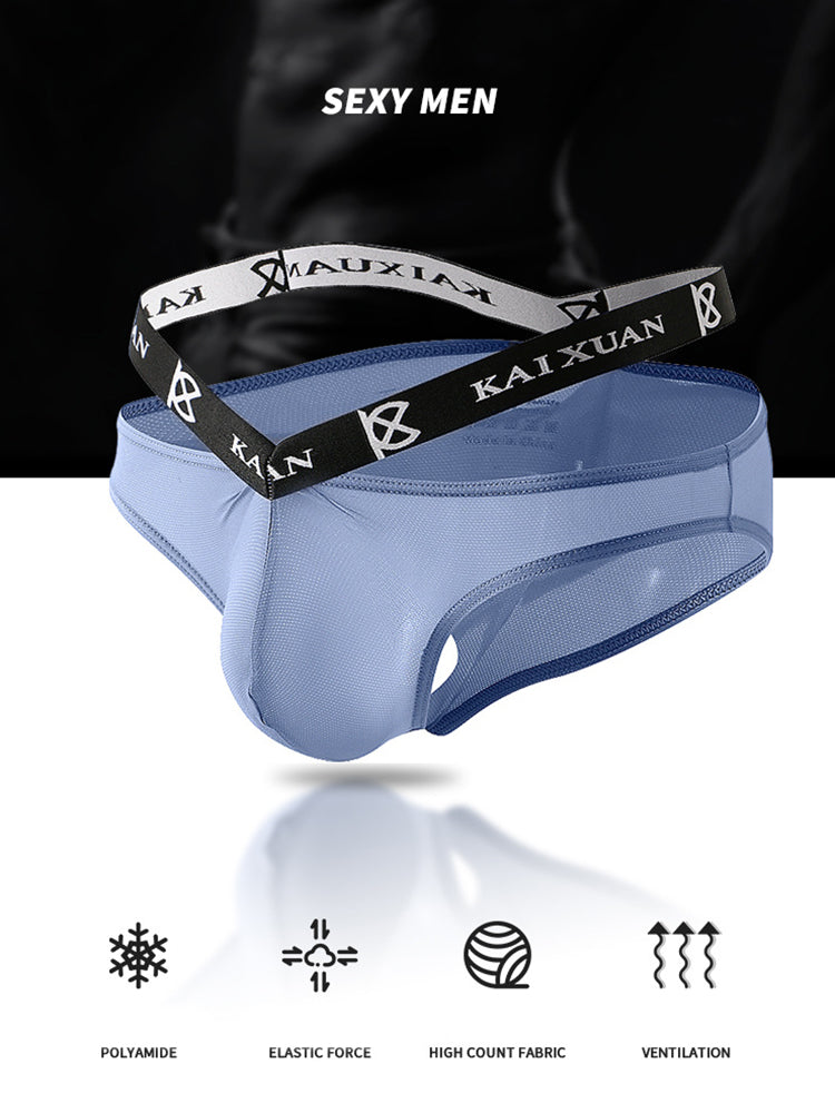 Turn up the heat with our Men's Sexy Ice Silk Mesh Breathable Erotic Briefs. Crafted from luxurious ice silk. these briefs offer a silky-smooth feel that's cool to the touch. perfect for those who crave both comfort and style. The breathable mesh design adds a provocative edge while ensuring excellent airflow to keep you fresh throughout the day. Designed to hug your body with a supportive fit. these briefs combine functionality with a daring aesthetic. making them ideal for special occasions or when you want to feel your most confident. Elevate your underwear collection with this blend of sexiness and sophistication.