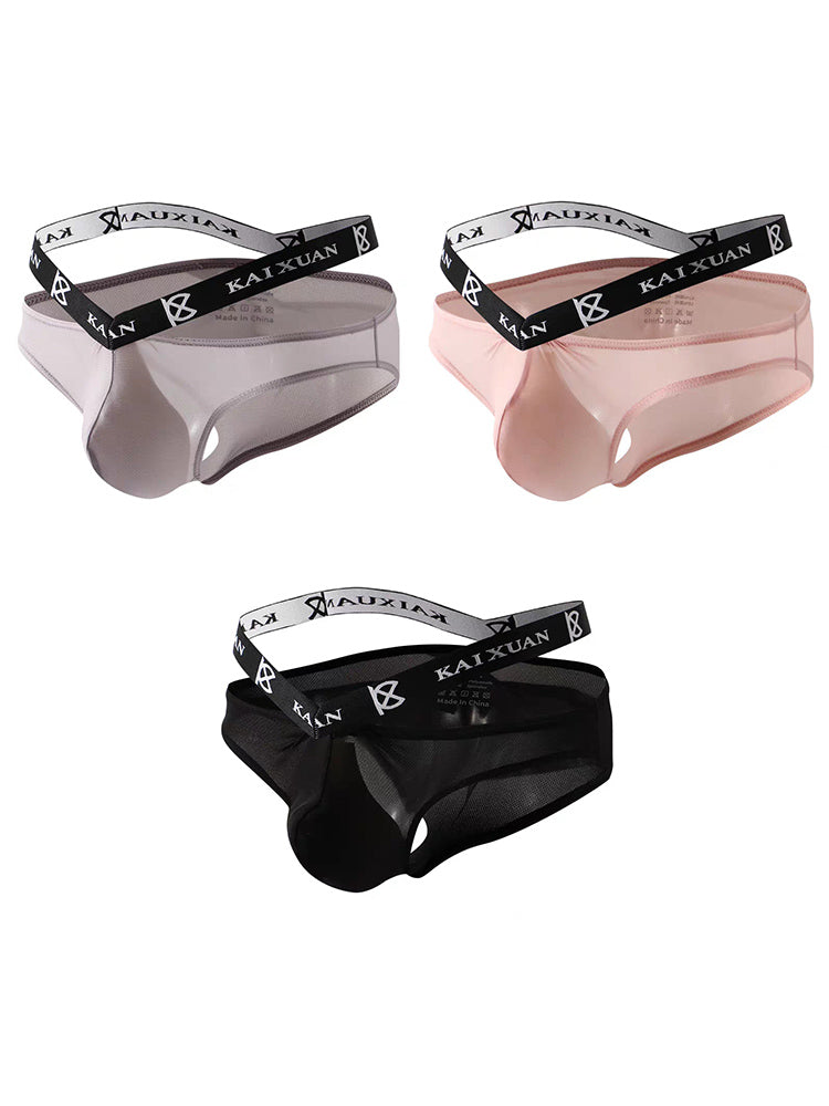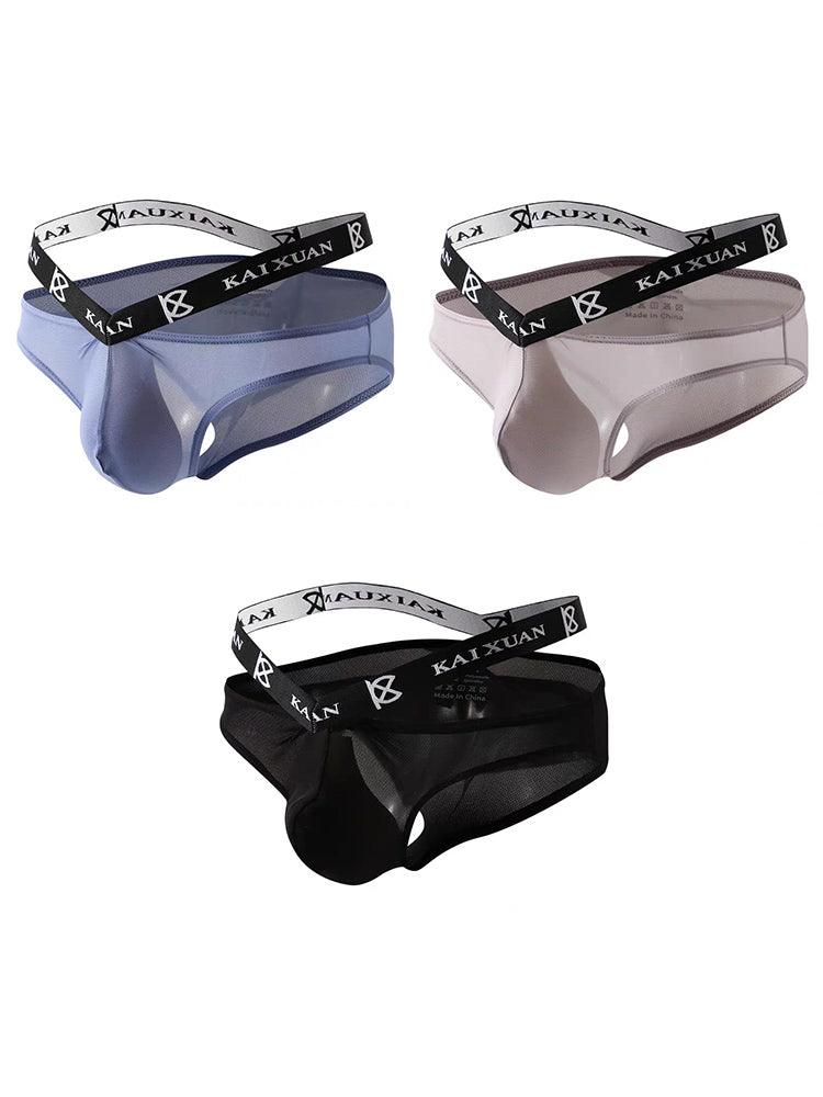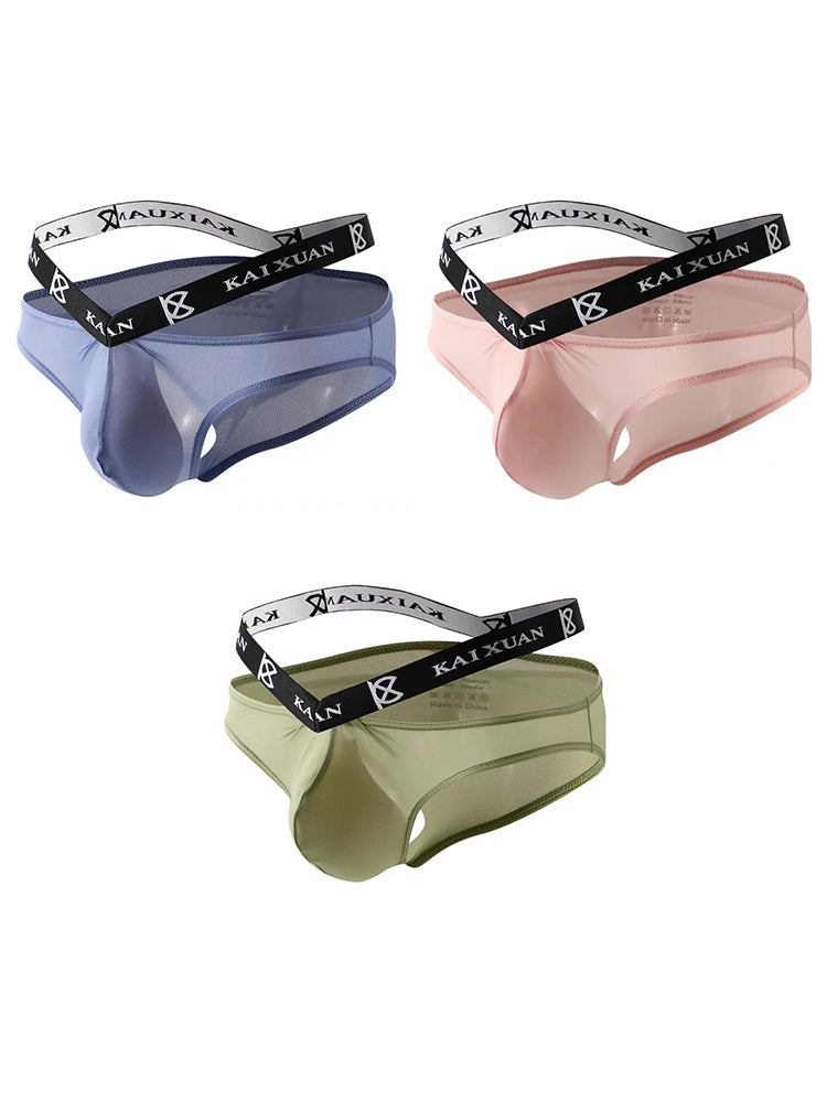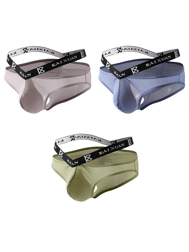 3 Pack Men's Sexy Ice Silk Mesh Breathable Erotic Briefs