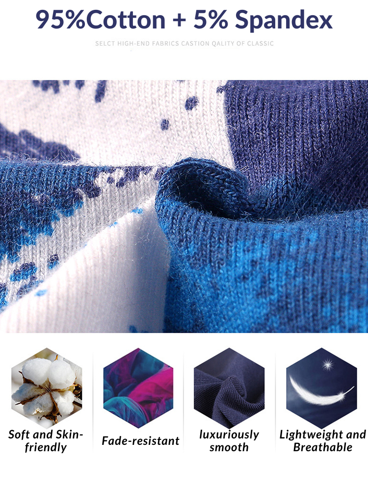 These trunks are designed with a stylish print pattern. making them a perfect choice for those who want to stay on top of the latest fashion trends. The breathable cotton fabric ensures a healthy and comfortable wearing experience. as it is soft and gentle on the skin. The use of eco-friendly dyes not only makes the trunks more sustainable but also ensures that the colors remain vibrant and resistant to fading over time. Additionally. the lightweight material allows for excellent air circulation. keeping you cool and comfortable throughout the day. even in warmer weather. Whether you're lounging at home or out and about. these trunks offer the perfect blend of style. comfort. and practicality.